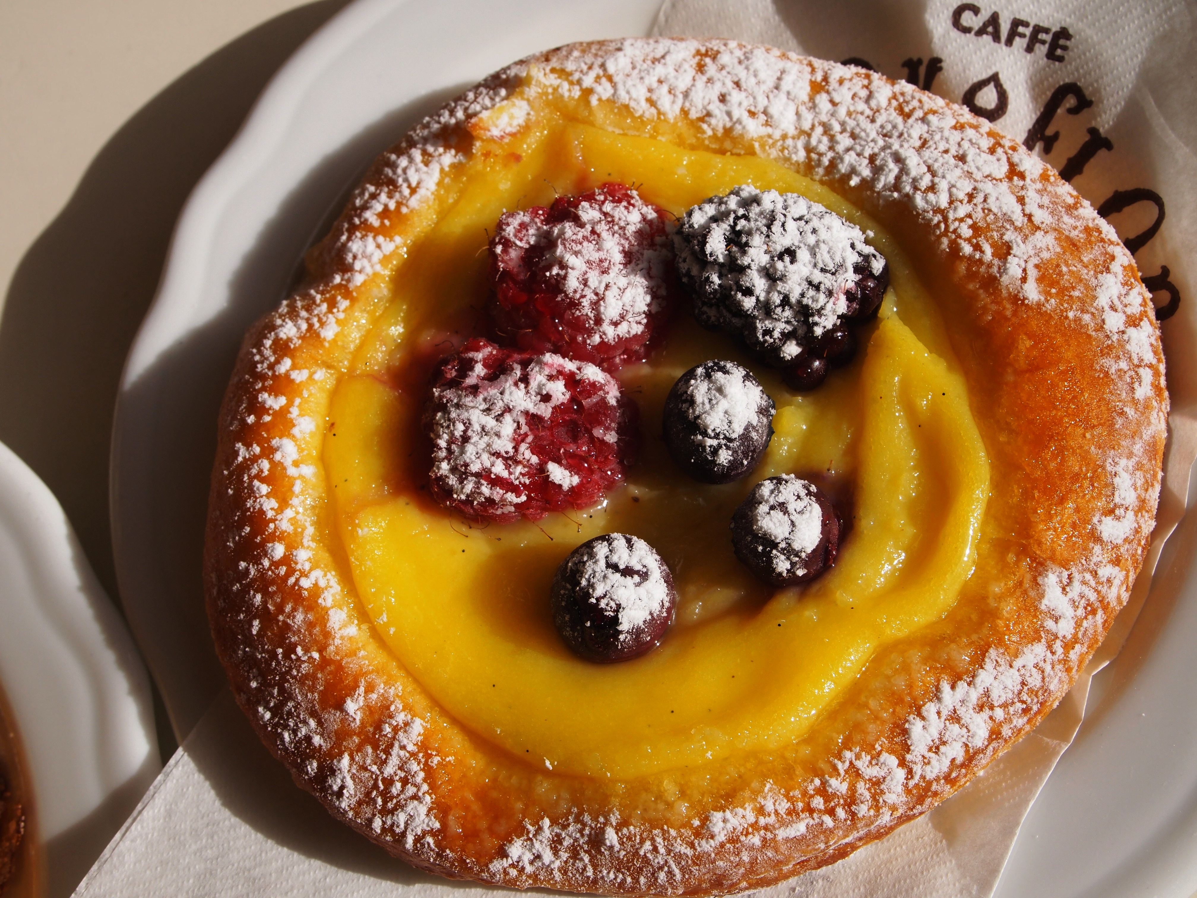 We started the day at a local pastry shop for a “typical” Italian breakfast. We learned that Italians generally choose sweets for their first meal of the day, and then we learned about the different types of pastries and how to order them in Italian. I chose a fruit and custard pastry (shown above). It was delicious!