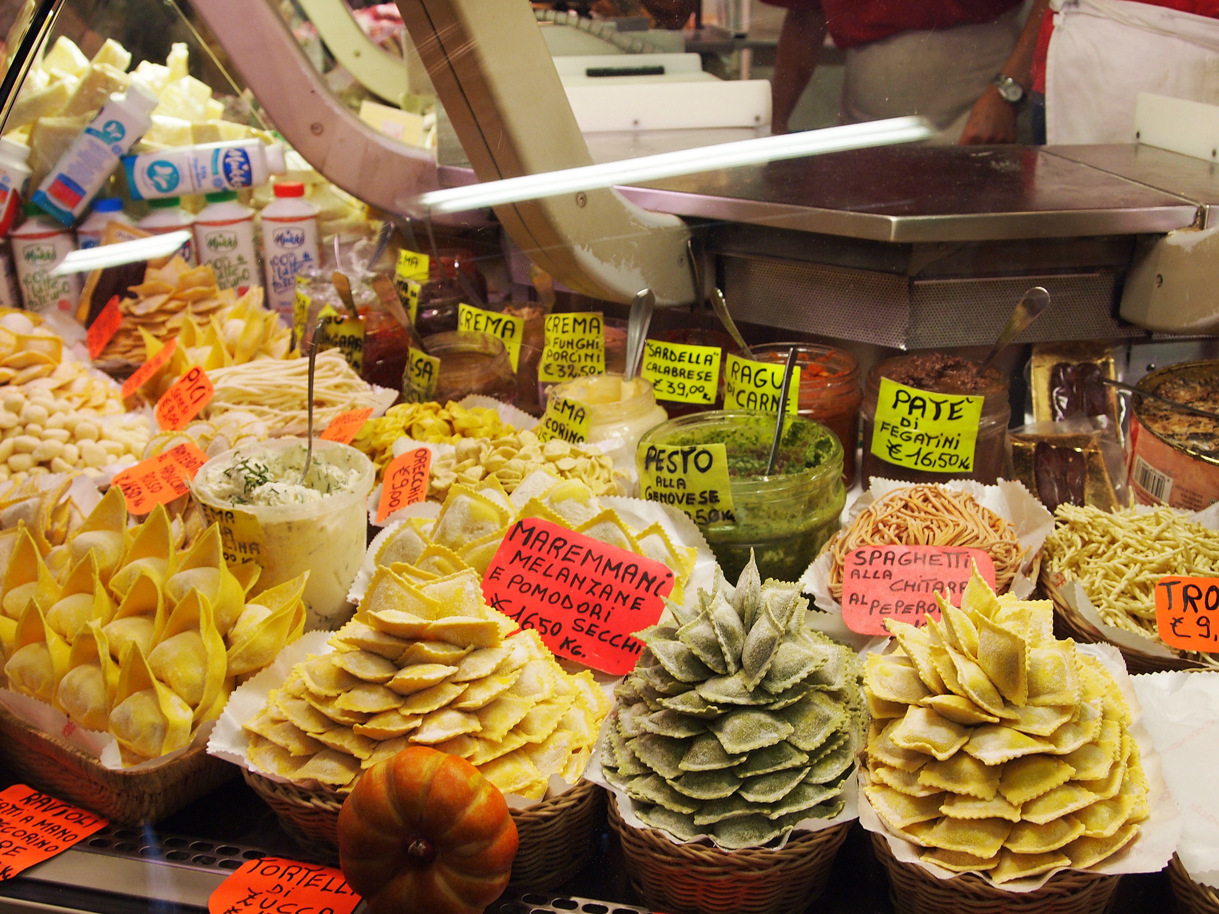 Now properly caffeinated, it was time for us to head toward Florence’s Sant’Ambrogio Market. This market has been in operation since 1873 and is still a favorite among locals. I can see why! The wide variety of fruits and vegetables, homemade pastas and sauces, fish, meats, cheeses and other specialty products – almost all of which are made or grown in Italy – was mind-boggling.