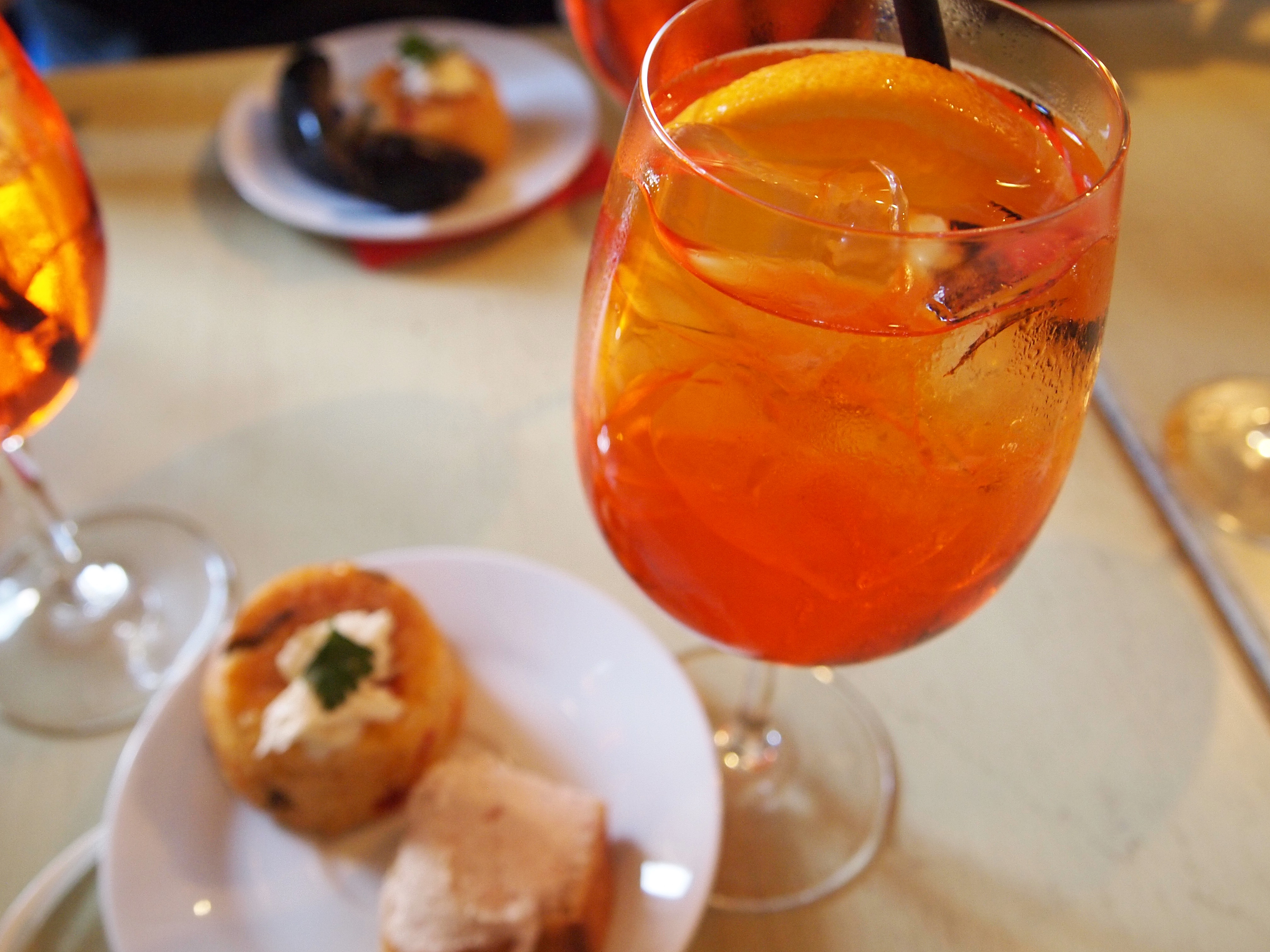 Having worked up a bit of an appetite after walking around the market, it was time to learn about another Italian tradition – appertivo. Appertivo is a designated extended appetizer time, featuring special drinks and small snacks. It’s usually enjoyed before dinner time, but since the tour didn’t last through dinner, we had it before lunch instead.