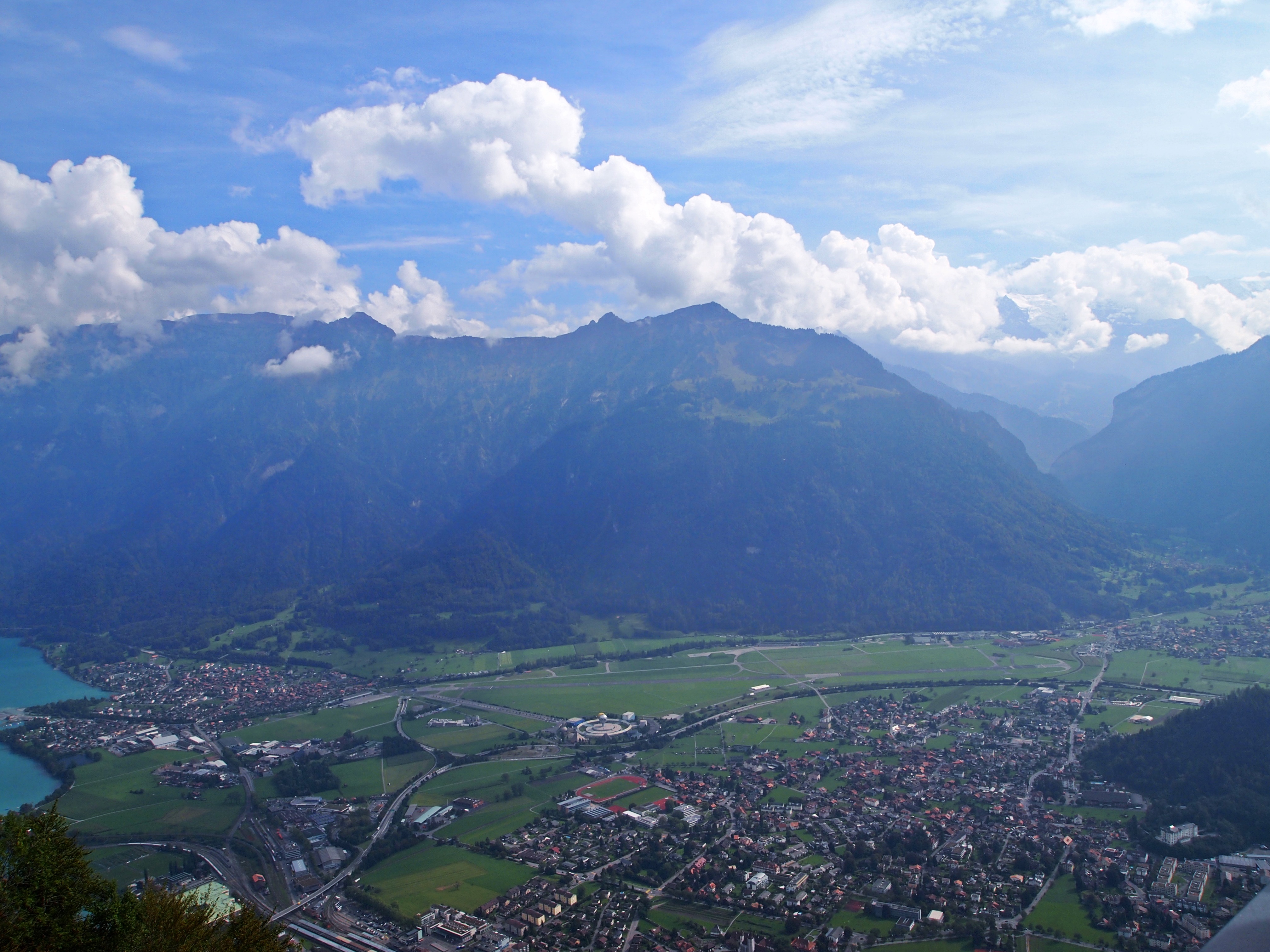 We took the next few hours to explore the summit, take some photos and have a picnic. We could see all of Interlaken, both lakes, and so many of the surrounding mountains. (And even though we were on top of one, the others around us still looked huge.) On the side of the summit opposite the town, we could see grassy mountainsides dotted with picturesque Swiss cottages.