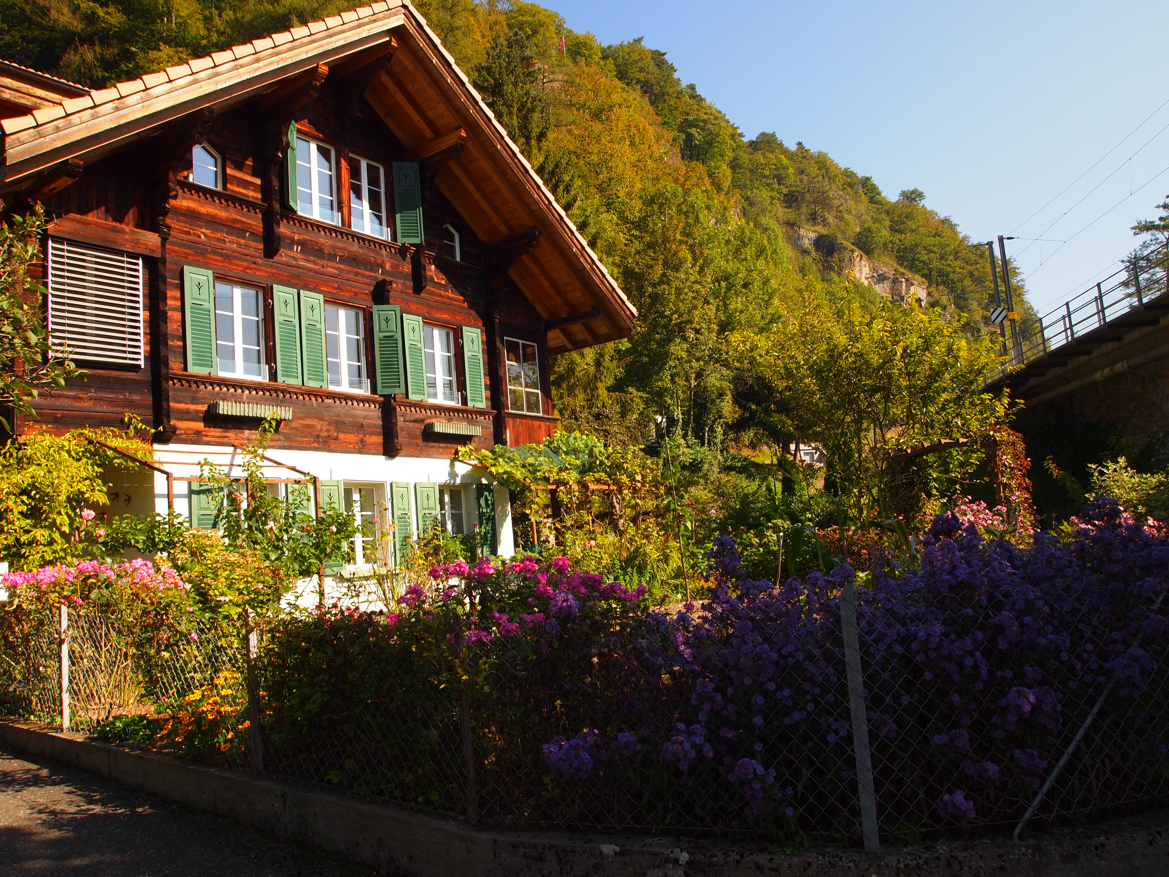 The next day we decided would be our lake day. Not to go swimming (though the glaciers have long since passed by, the water feels like they made their trip yesterday), but to explore. We set off toward Brienz, using the river as our guide, through a village of signature Swiss cottages. Talk about garden inspiration. It felt like we were walking through a fairy tale.