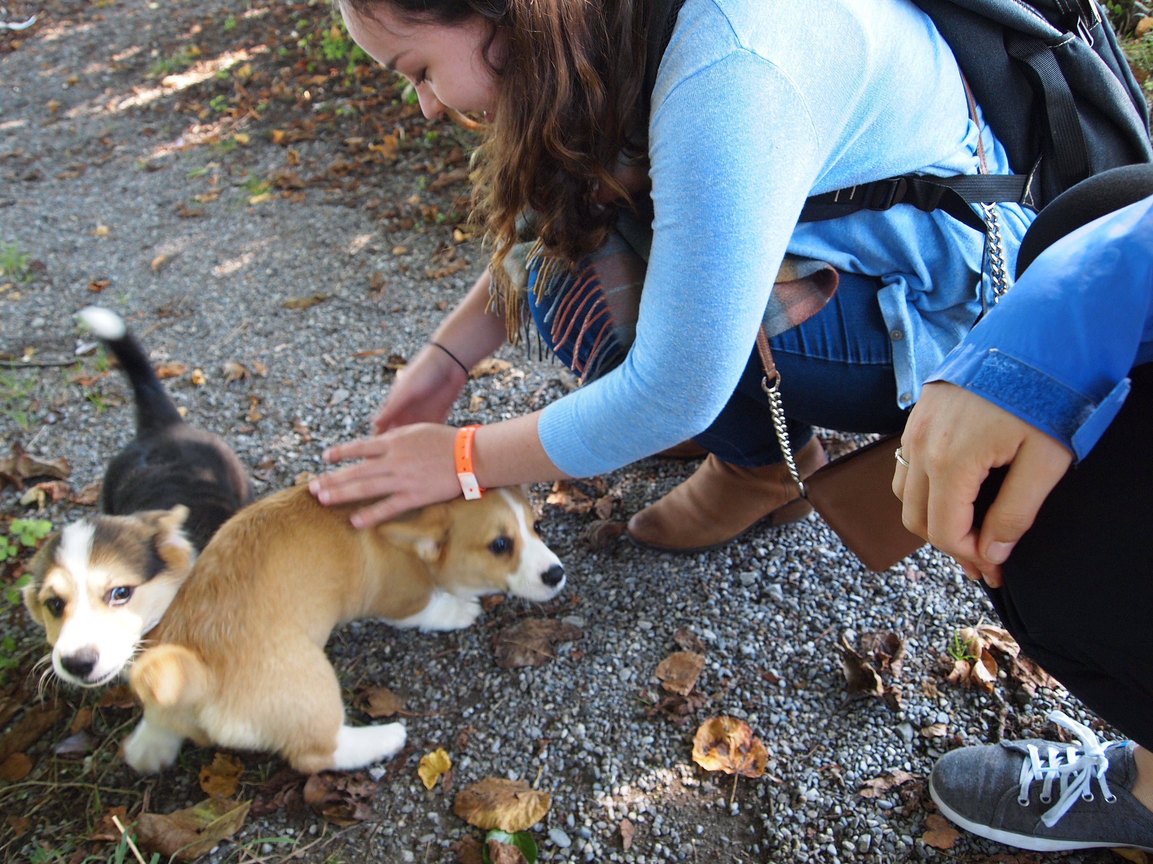 The walk back was full of another host of surprises. The first – puppies. We were making our way toward the sandy part of the shore, when out of nowhere, two corgi puppies bounded out of a nearby covering to say hello. They were the friendliest and fluffiest dogs we’d seen since arriving in Europe last month. And everyone knows that few things make dog-deprived college kids happier than friendly, fluffy, corgi puppies.