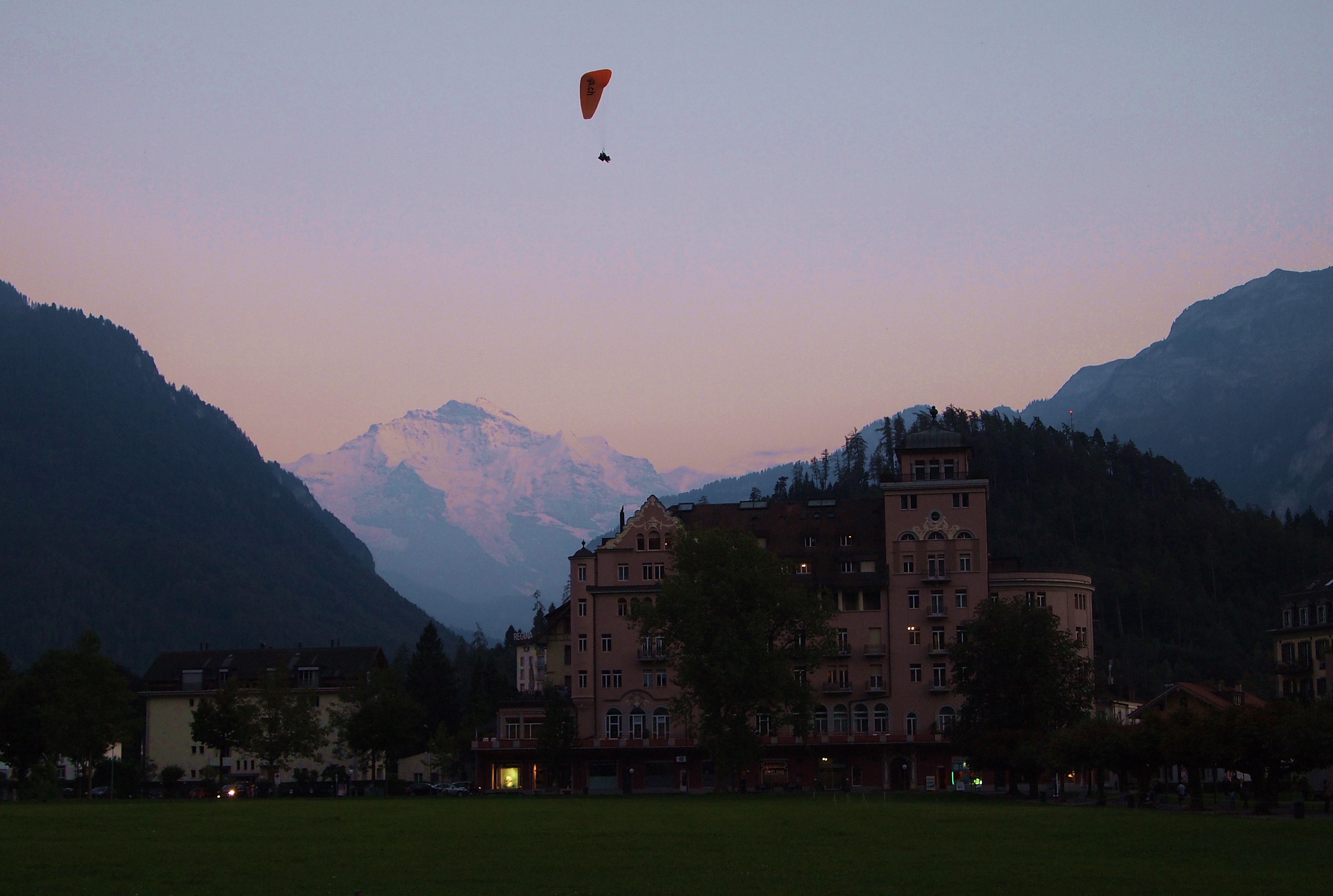As we waited for our chocolate bars to cool off, we wandered over to a nearby field and watched the last of that day’s paragliders return to earth. With the morning haze long gone, we had a perfect view of Jungfrau, clearly outlined by the glow of the just-passed sunset. It was truly the perfect end to the perfect weekend in Switzerland.