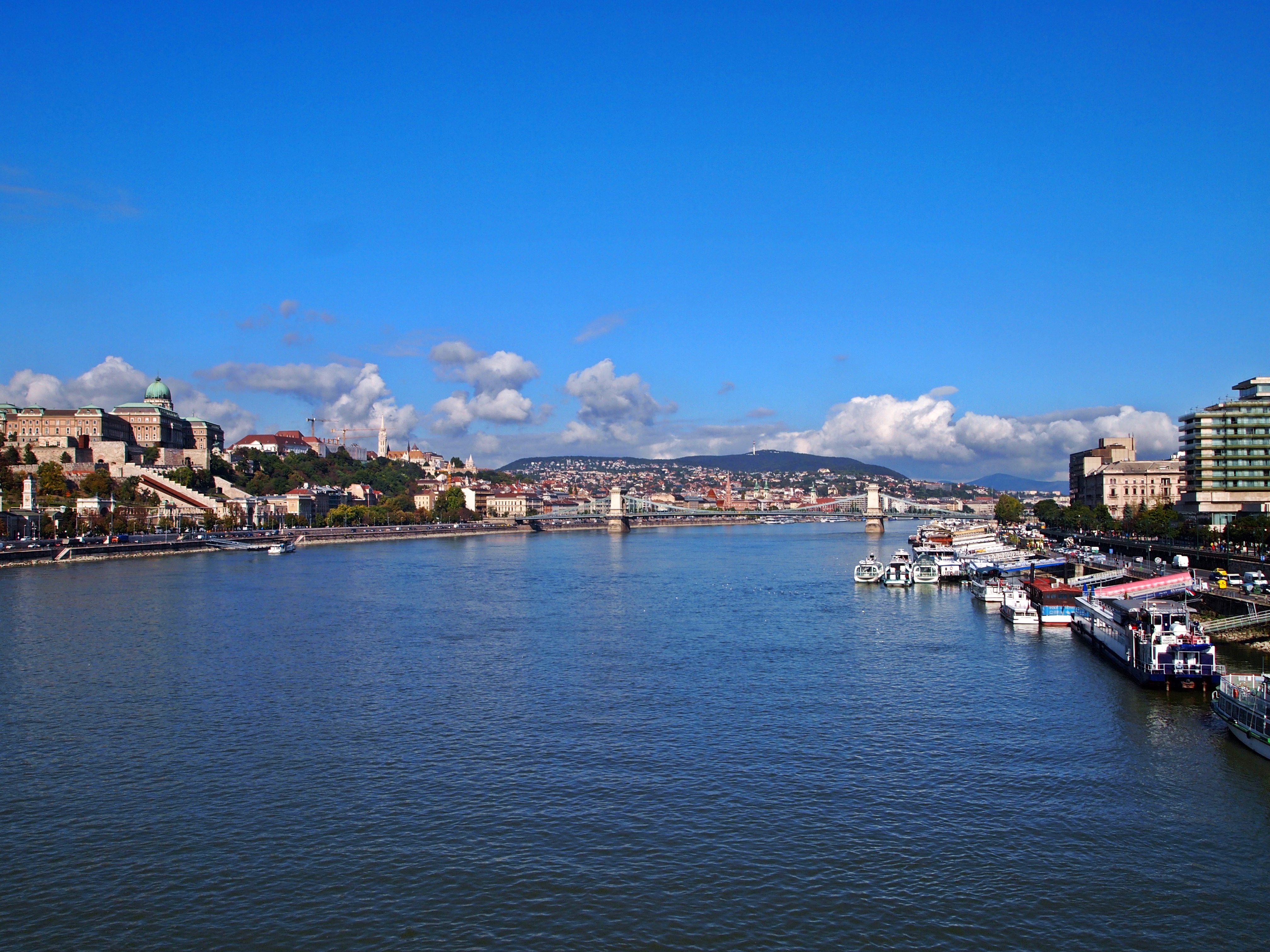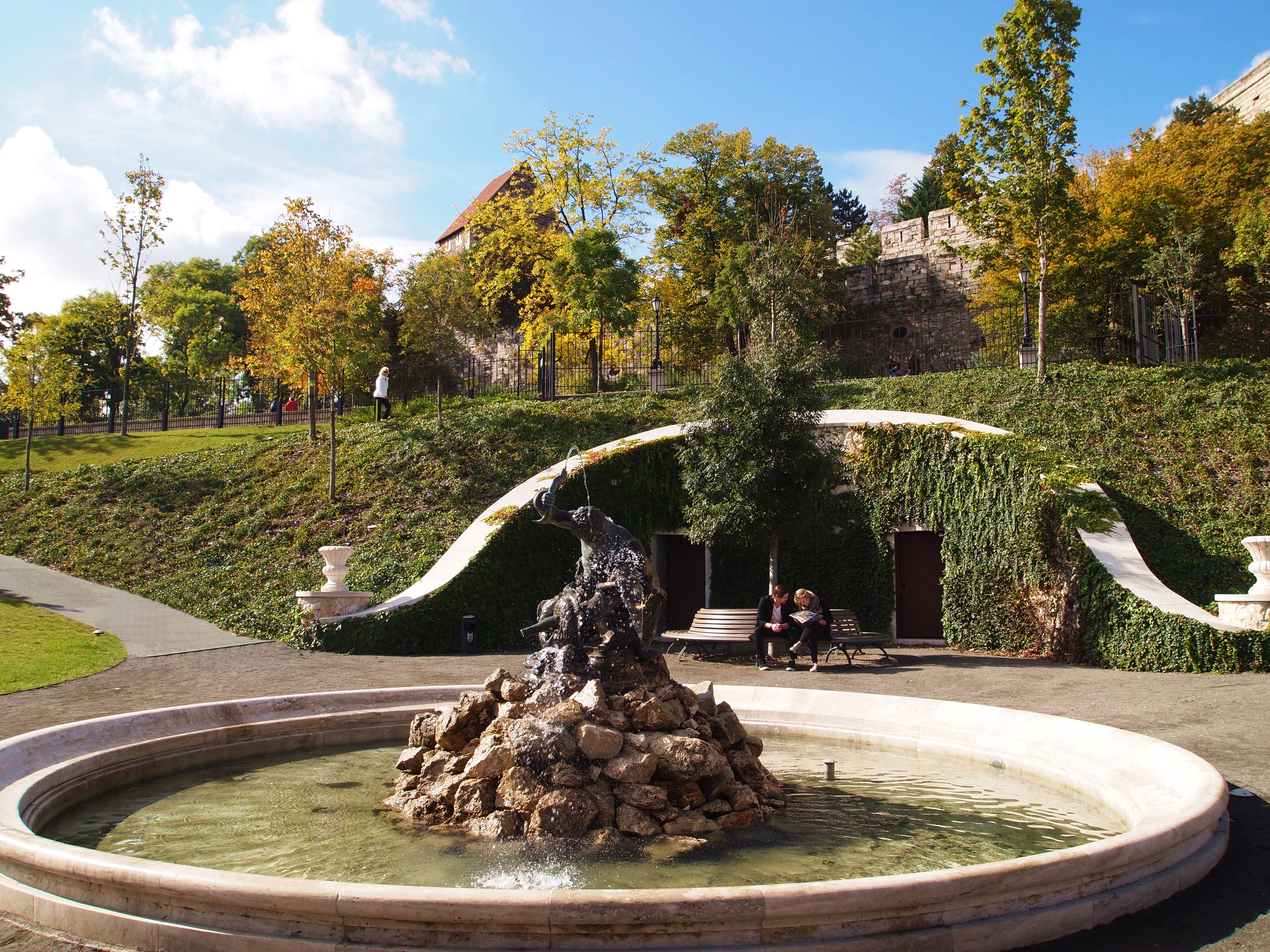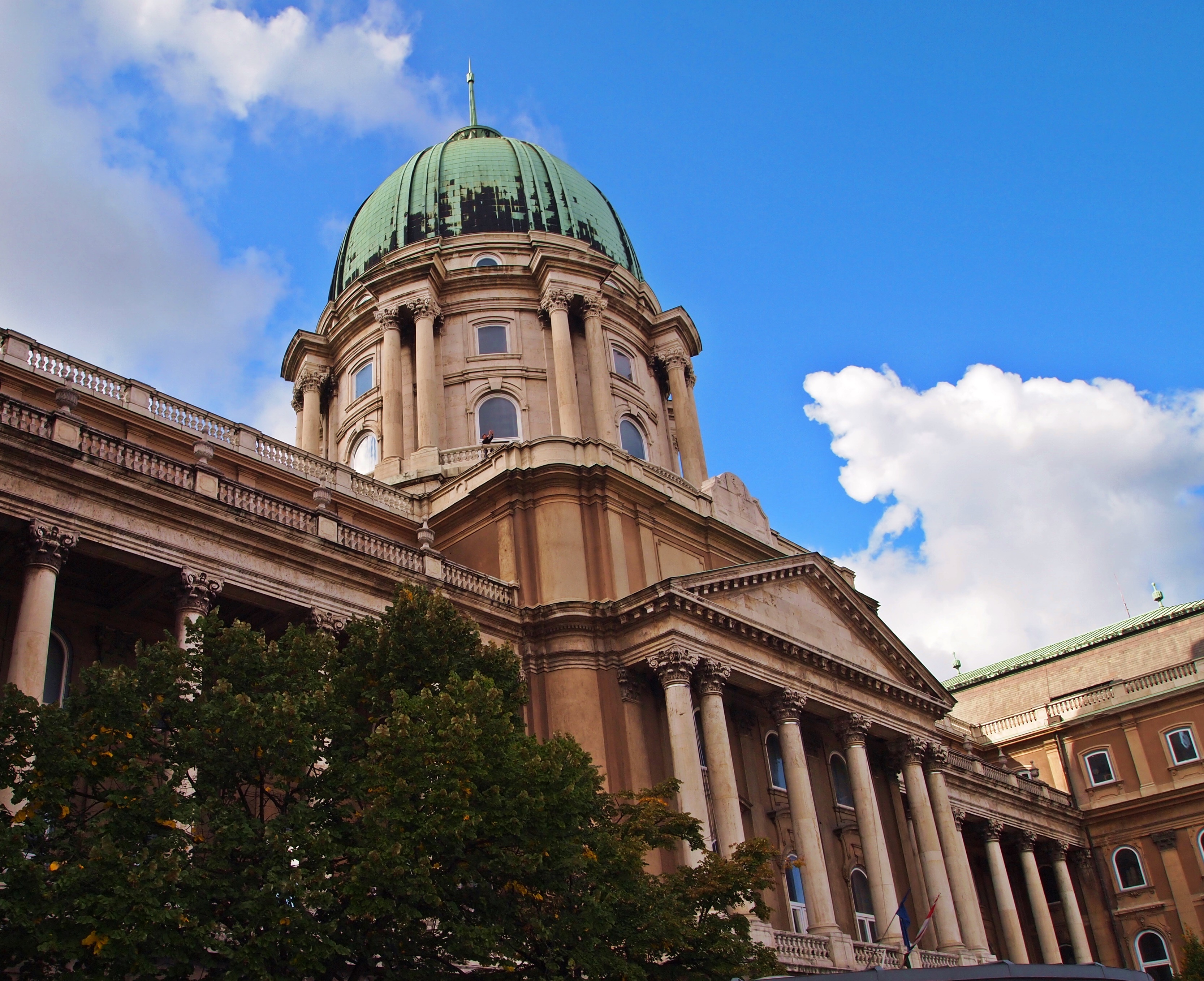 The Dohány Utcai Zsinagóga (or, Dohány Street Synagogue) was completed in 1859. It is the largest synagogue in Europe, and second in the world only to the Belz Great Synagogue in Jeruselem. It’s a classic example of Moorish Revival style architecture.Gotta love that Eastern European architecture!One of the two Klotild Palaces leading to the Elizabeth Bridge.The Inner City Parish Church, built on the site of the oldest church in Pest.Europe’s second-largest river, the Danube. It once served as the border between Buda and Pest, but now it runs right through it.Part of the Várbazár, or, Castle Garden Bazaar, near the entrance to Buda Castle.The morning sun shines through the Várbazár’s architecture.We could see a touch of fall color in the trees of the castle gardens. At 55 degrees, it felt like fall, too!From the garden, we had the option to take the stairs or an escalator to the bottom of the castle.Couldn’t leave the garden without taking a photo of one of the flowers!Travel buddies overlooking the city from Buda Castle!Just one part of the massive Buda Castle. Construction was first completed in 1265, but of course, this sprawling palace has been renovated and added to many, many, times since then.Decorative details in a square near the palace. As we walked by, we saw a film crew working in the square.The Széchenyi Lánchíd, or, Széchenyi Chain Bridge, from the top of the Budavári Sikló (Budapest Castle Hill Funicular). When the bridge was finished in 1849. it was one of the largest in the world. It was also the first permanent bridge in Hungary – though most of it was rebuilt after being destroyed in WWII during the Siege of Budapest.Szent István Bazilika – St. Stephen’s Basilica is the third largest church in all of Hungary, and is named after the country’s first king.The Hungarian Royal State Opera House, a good example of neo-Renaissance Hungarian architecture. Construction was completed in 1884. Nowadays, the building houses over 50 shows a year, plus the annual Hungarian Opera Ball.