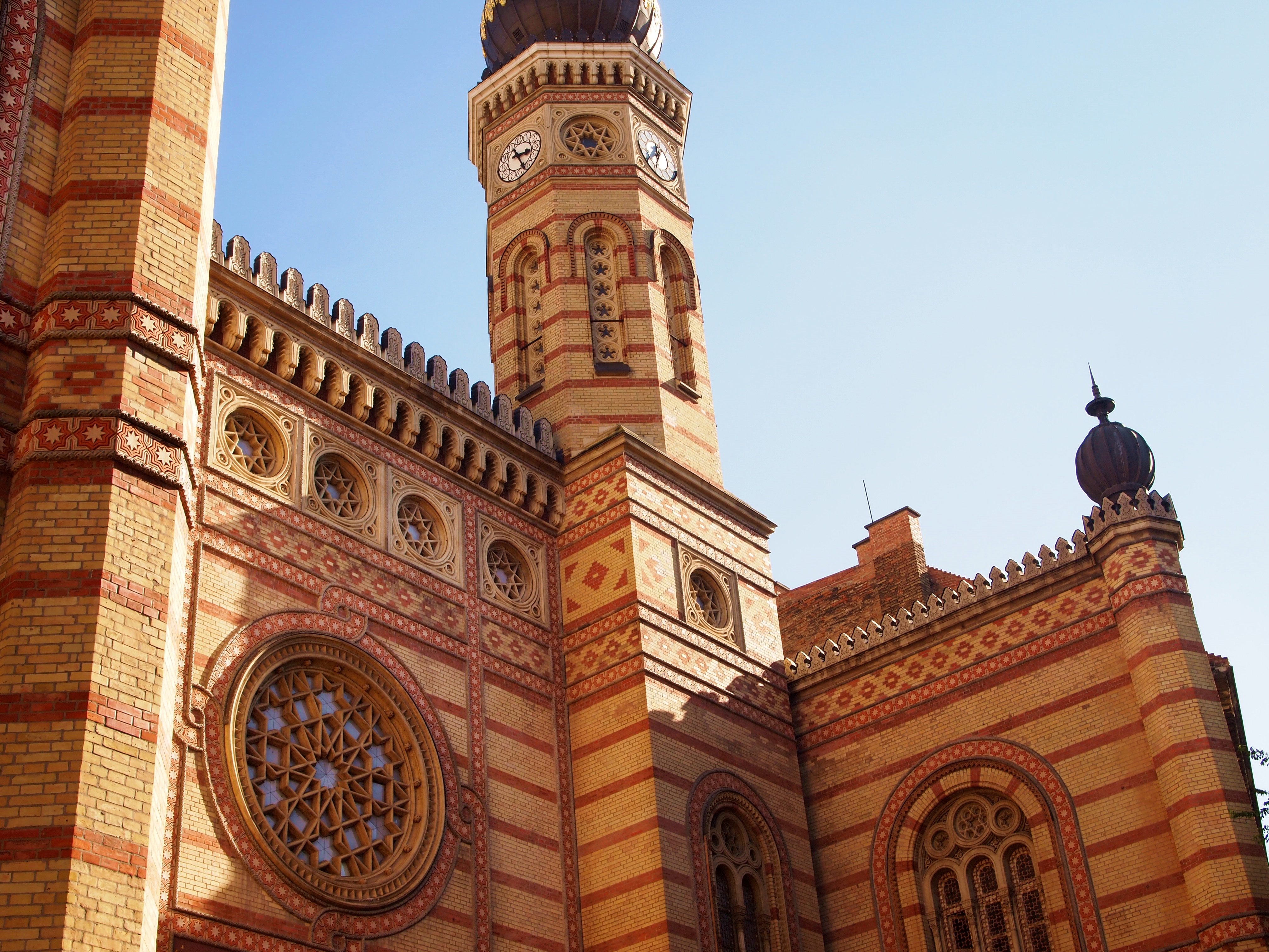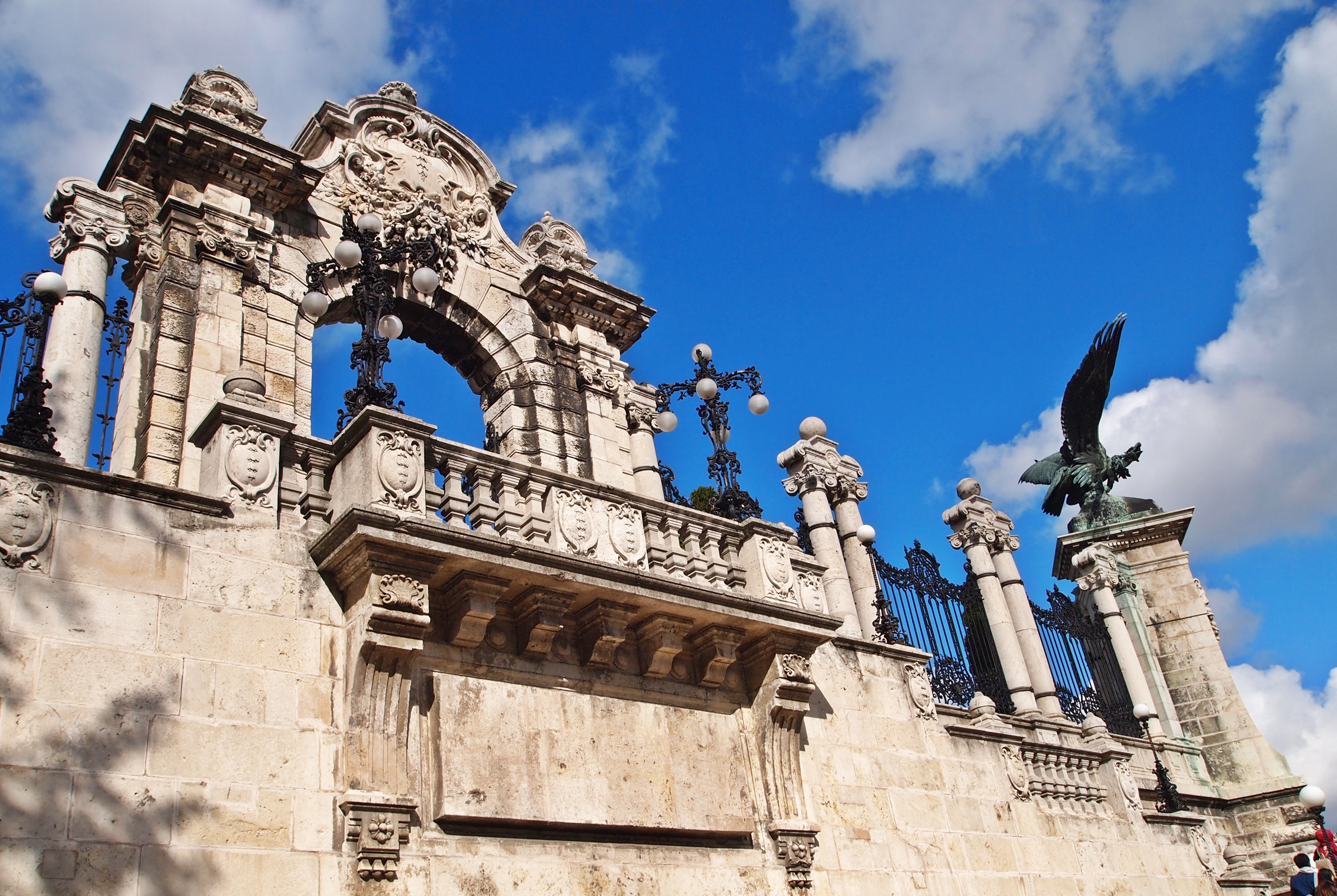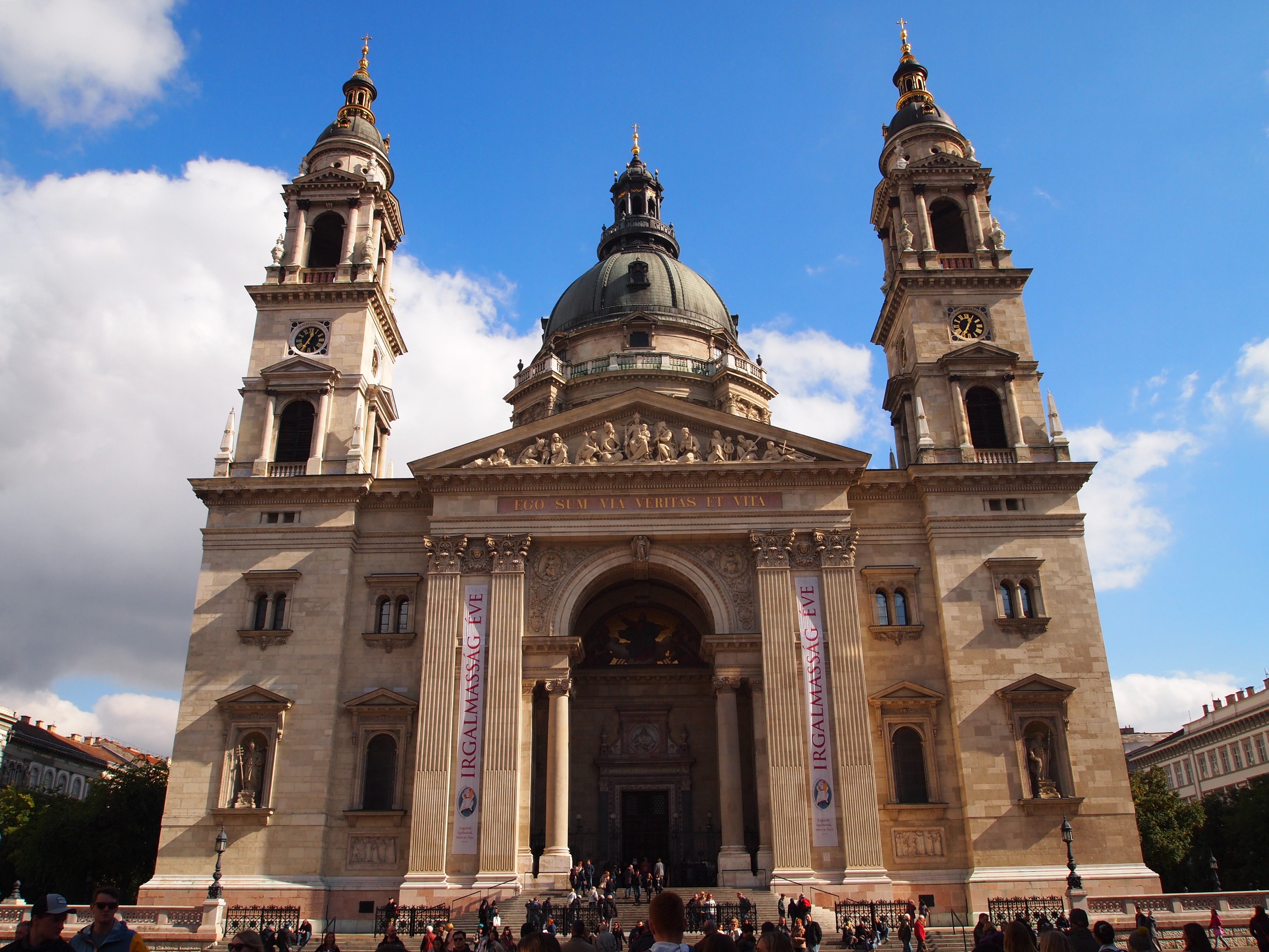 The Dohány Utcai Zsinagóga (or, Dohány Street Synagogue) was completed in 1859. It is the largest synagogue in Europe, and second in the world only to the Belz Great Synagogue in Jeruselem. It’s a classic example of Moorish Revival style architecture.Gotta love that Eastern European architecture!One of the two Klotild Palaces leading to the Elizabeth Bridge.The Inner City Parish Church, built on the site of the oldest church in Pest.Europe’s second-largest river, the Danube. It once served as the border between Buda and Pest, but now it runs right through it.Part of the Várbazár, or, Castle Garden Bazaar, near the entrance to Buda Castle.The morning sun shines through the Várbazár’s architecture.We could see a touch of fall color in the trees of the castle gardens. At 55 degrees, it felt like fall, too!From the garden, we had the option to take the stairs or an escalator to the bottom of the castle.Couldn’t leave the garden without taking a photo of one of the flowers!Travel buddies overlooking the city from Buda Castle!Just one part of the massive Buda Castle. Construction was first completed in 1265, but of course, this sprawling palace has been renovated and added to many, many, times since then.Decorative details in a square near the palace. As we walked by, we saw a film crew working in the square.The Széchenyi Lánchíd, or, Széchenyi Chain Bridge, from the top of the Budavári Sikló (Budapest Castle Hill Funicular). When the bridge was finished in 1849. it was one of the largest in the world. It was also the first permanent bridge in Hungary – though most of it was rebuilt after being destroyed in WWII during the Siege of Budapest.Szent István Bazilika – St. Stephen’s Basilica is the third largest church in all of Hungary, and is named after the country’s first king.The Hungarian Royal State Opera House, a good example of neo-Renaissance Hungarian architecture. Construction was completed in 1884. Nowadays, the building houses over 50 shows a year, plus the annual Hungarian Opera Ball.