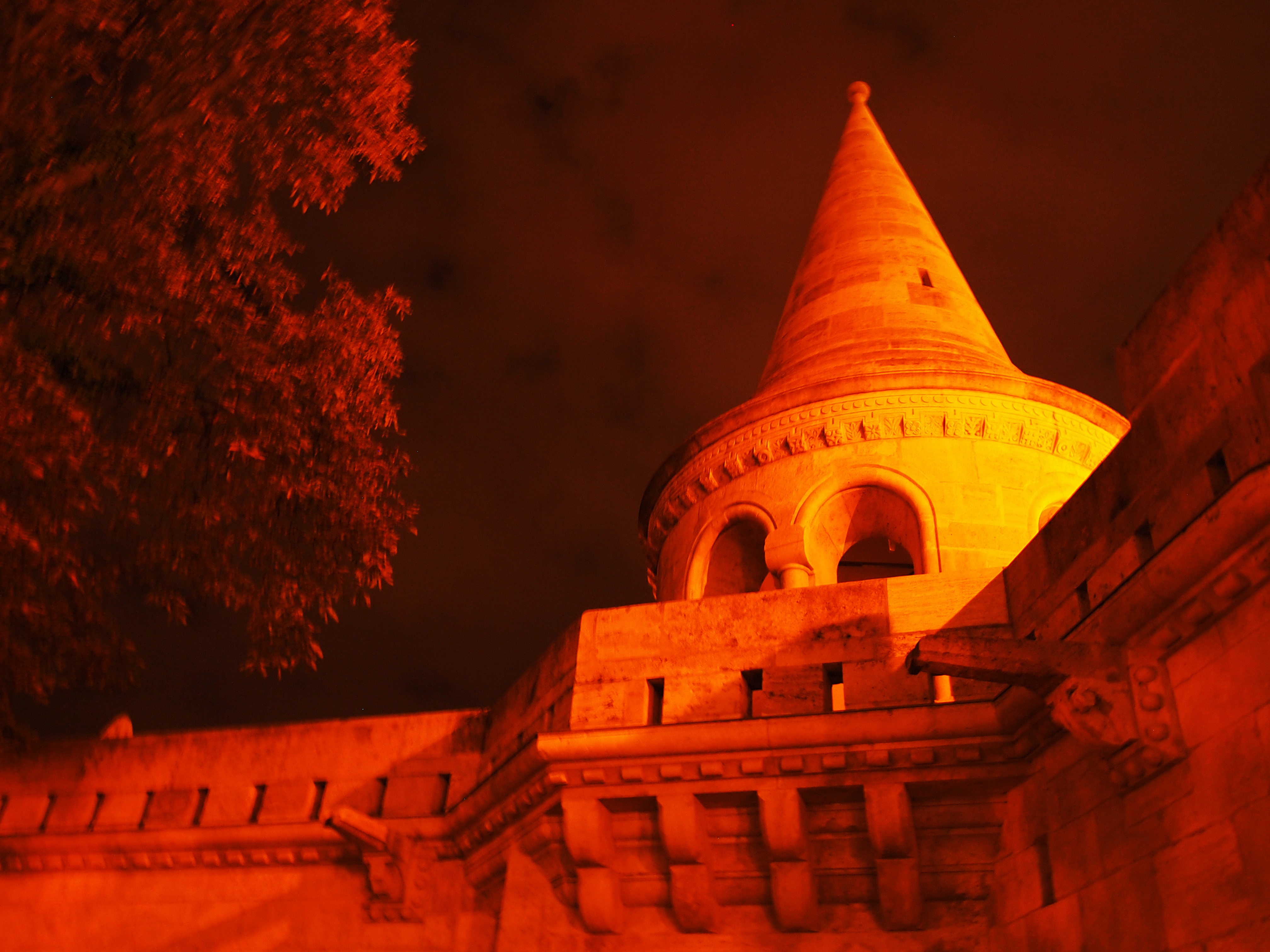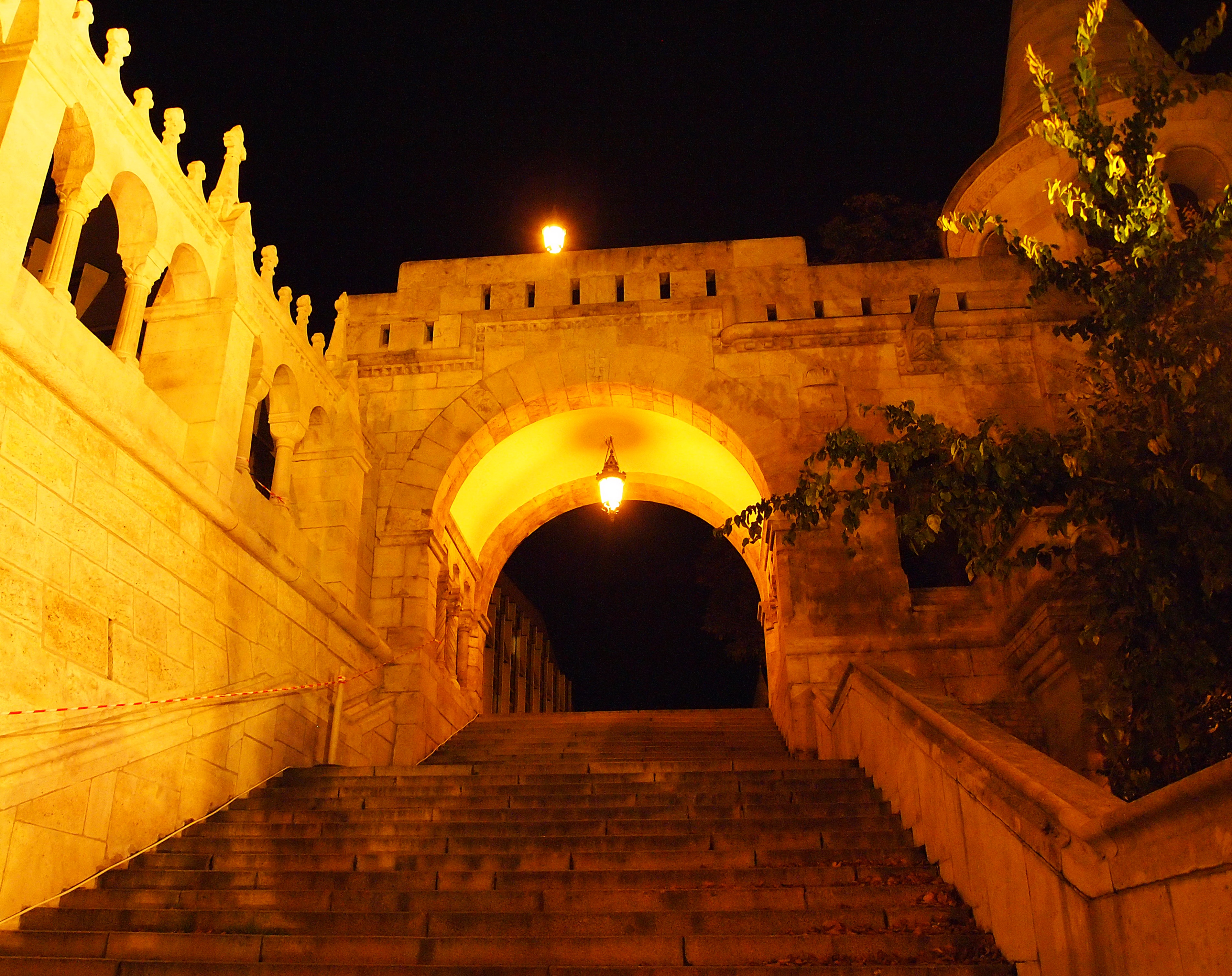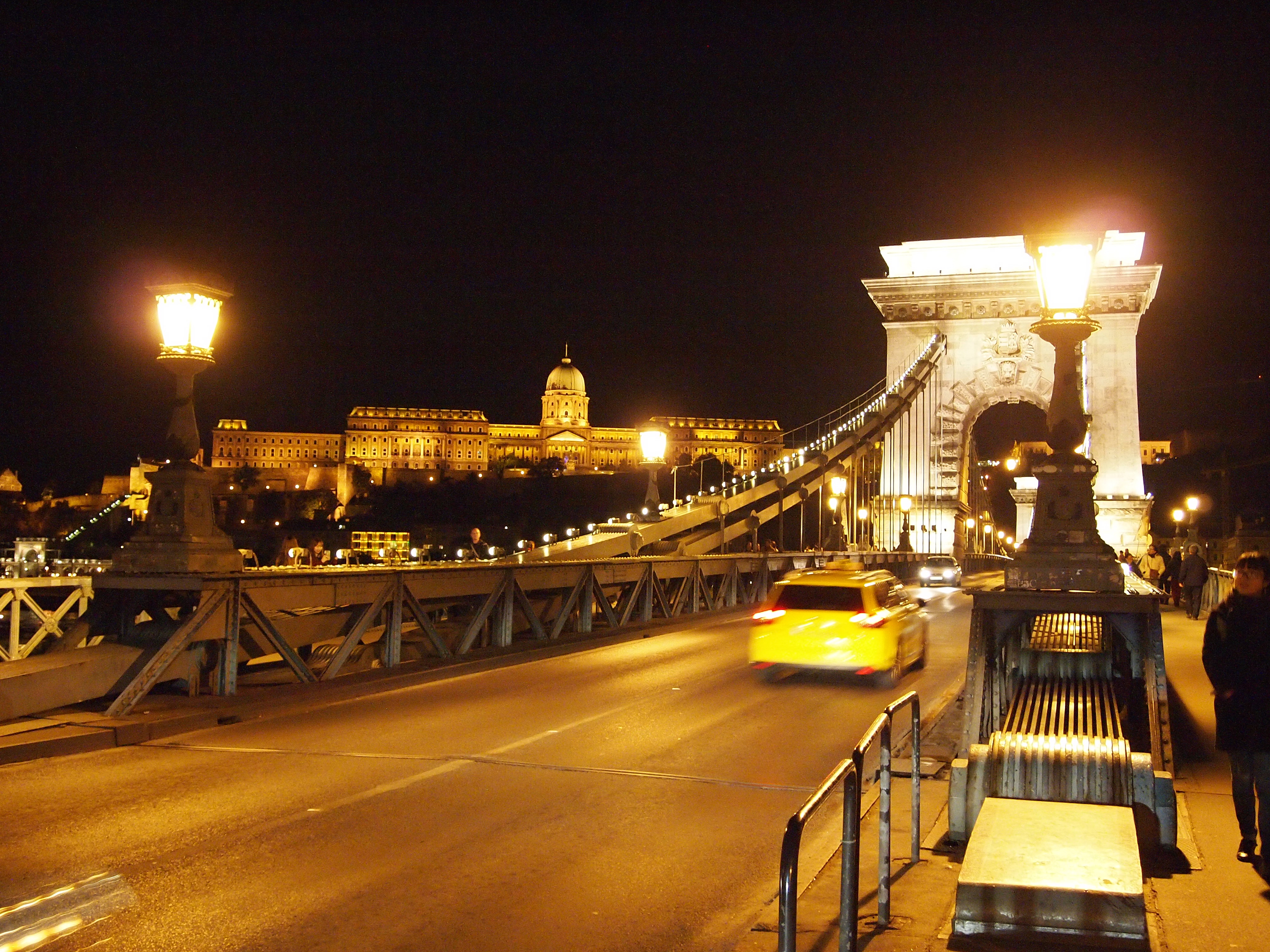 We left as it was beginning to get dark, perfect timing to walk around the brightly-lit city. Our guides said that the city would take on a whole new character once the sun went down, and it was hard to imagine what that might be until I actually saw it for myself. We stopped for dinner (yet another great Hungarian dish, a salmon steak with traditionally cooked vegetables, plus a cup of hot green tea – I was into the tea that day – and a creamy mousse for dessert) before setting out to explore.
